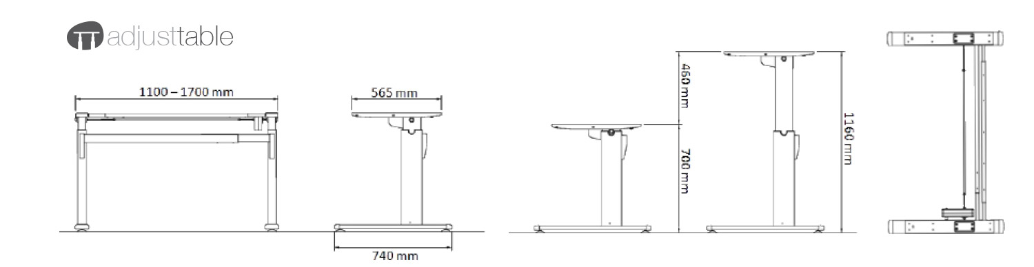 | Breite Tischgestell: | min. 110 cm / max. 170 cm |